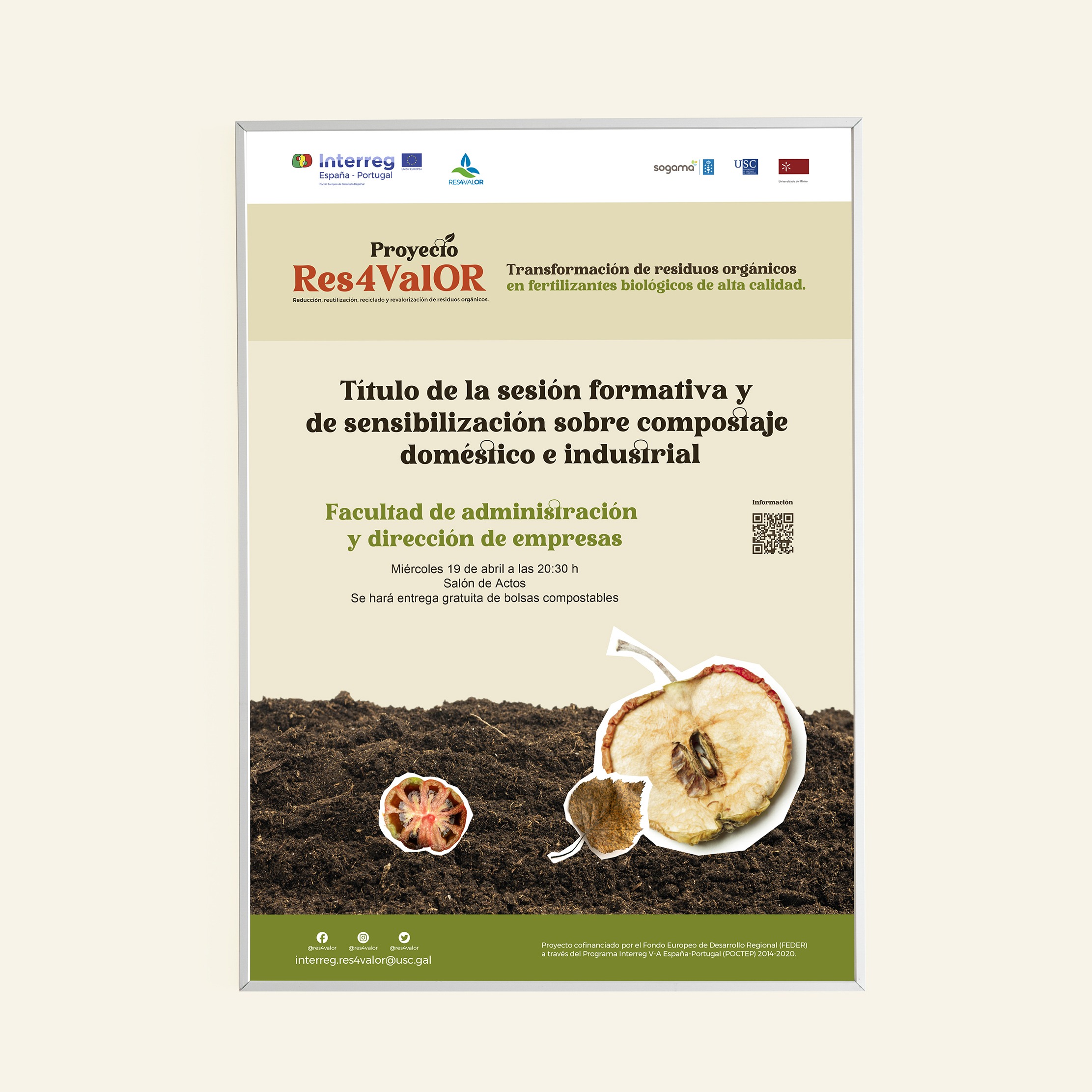 Sus socios, Universidade de Santiago de Compostela, Universidade do Minho y Sogama, nos plantearon la necesidad de elaborar un portal web como refuerzo de las actividades educativas y didácticas contempladas en el proyecto Res4ValOR: Reducción, reutilización, reciclado y revalorización de residuos orgánicos.