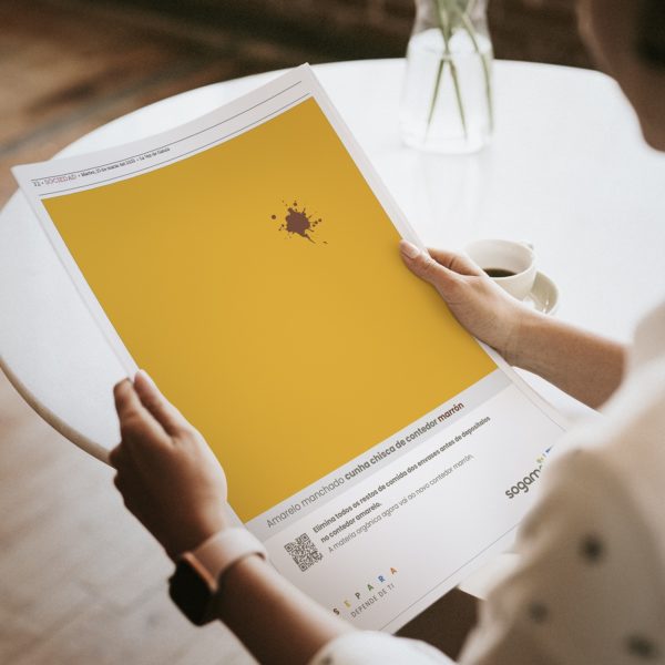 Continuando con el desarrollo que preparamos para el buscador Onde Vai?, decidimos utilizar un concepto tan reconocible como es el de las manchas, evidenciando que separar residuos de forma adecuada es mucho más sencillo de lo que parece: simplemente hay que conseguir que los colores no se mezclen.