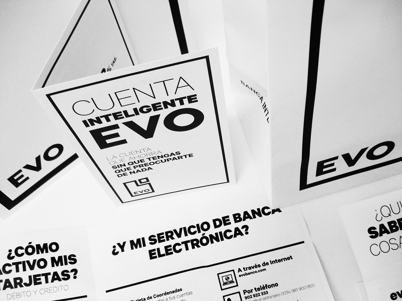 En marzo de 2012, Novagalicia lanza su división bancaria para fuera de Galicia con el nombre de EVO Banco. Para su estreno nos confía la supervisión gráfica y la producción de distintas piezas promocionales y la rotulación de sus oficinas en toda España.