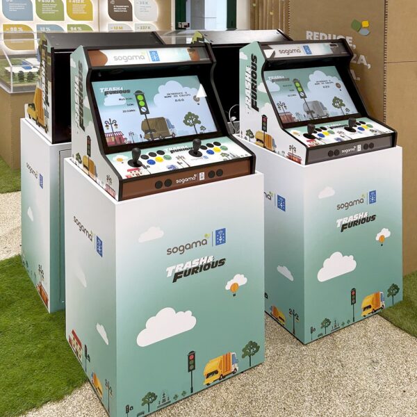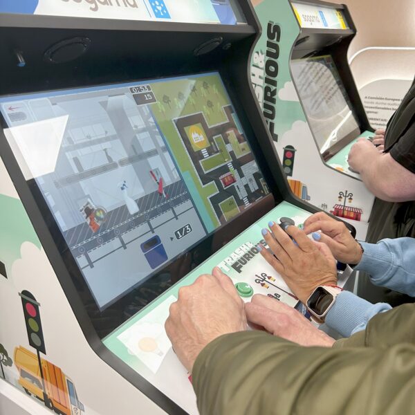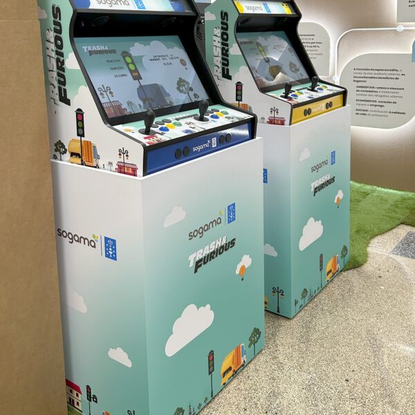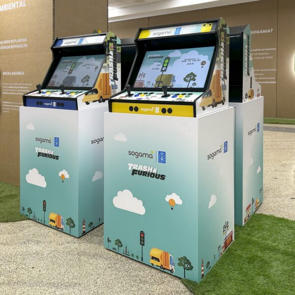Para ello, les propusimos el desarrollo del videojuego Trash & Furious, que se presenta en formato máquina recreativa, y en el que los usuarios tienen que separar los distintos residuos en sus contenedores y después transportarlos a la planta correspondiente. Desde Galicia Comunicación nos encargamos tanto de la conceptualización y diseño del juego (mecánica, dinámicas, elementos…), como de su desarrollo gráfico. Para la parte tecnológica contamos con la colaboración de Polygon-e Studio.